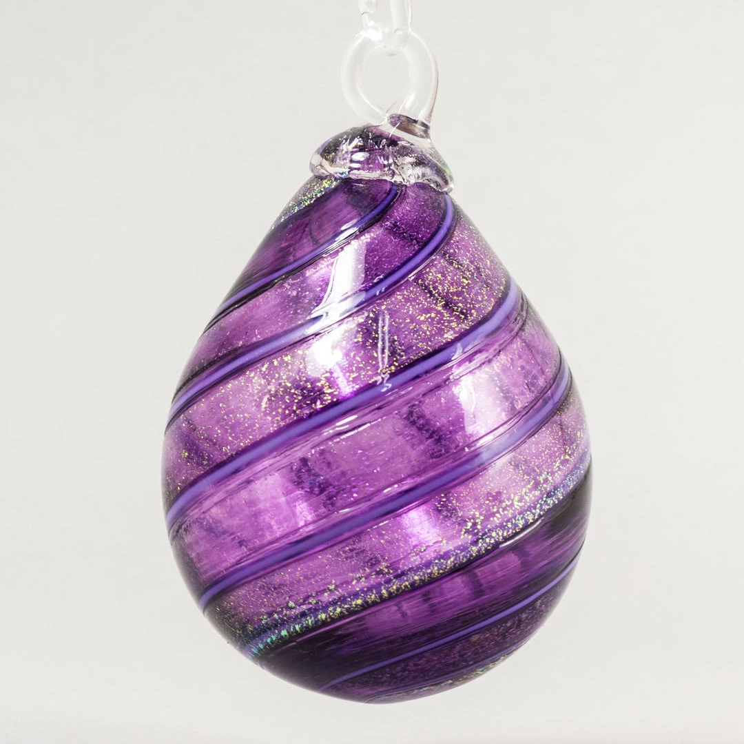 Raindrop style that highlights the beauty of the glass and the skill of the artist. Bright colors enhance the elegance of these charming baubles.