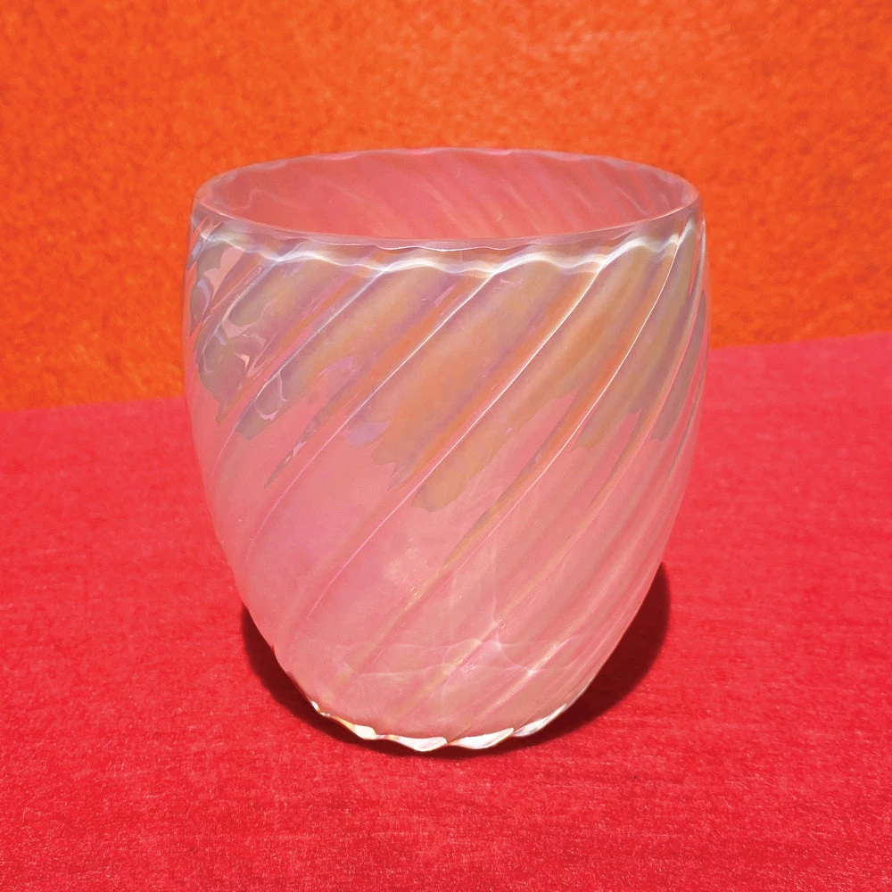 Coming from the Latin opalus, meaning “precious jewel”, the opal is known to symbolize loyalty, hope, and confidence. Our twist votives are handmade by artisan glassblowers to mimic the rainbow fragments of the precious stone.