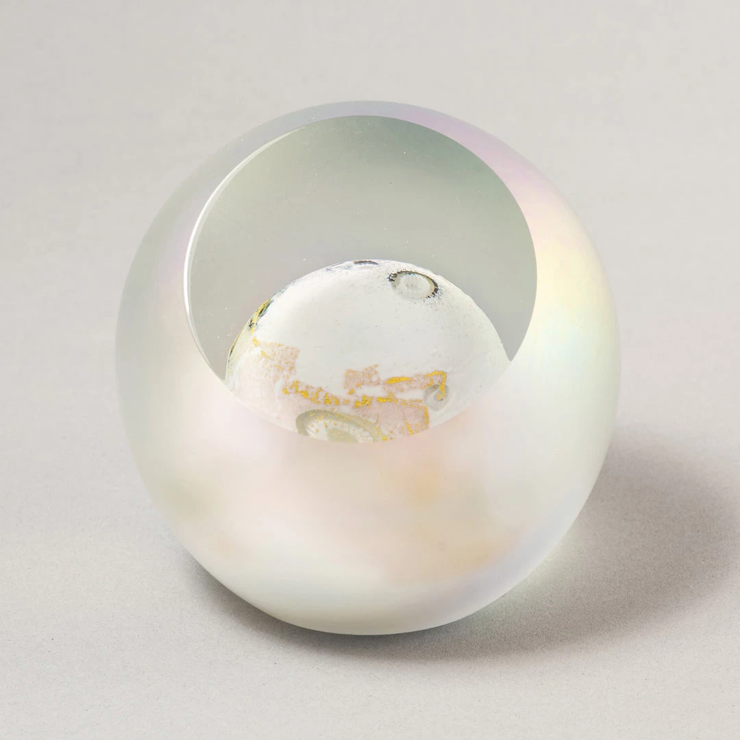 Inspired but the designer’s interpretation of the solar system, each weight takes a team of 2-3 artists to create. These carefully formed designs use a wide spectrum of specialty colors, dichroic glass, glow material, and precious metals.