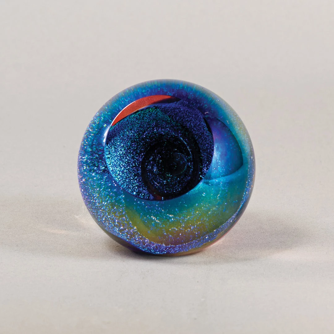 Our fireball paperweights feature explosions of sparkling color and are cut specifically to enhance their hypnotic inner spiral.
