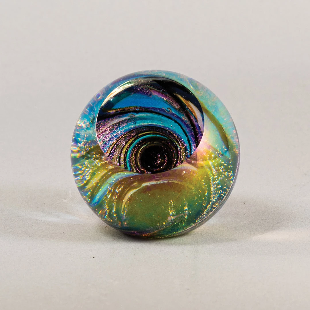 Our fireball paperweights feature explosions of sparkling color and are cut specifically to enhance their hypnotic inner spiral.